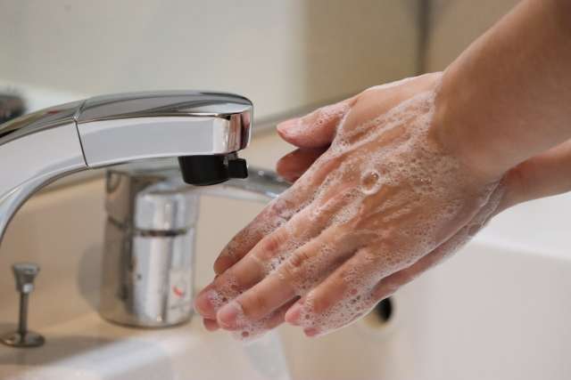「朝、清潔な洗面台で顔を洗う喜び」